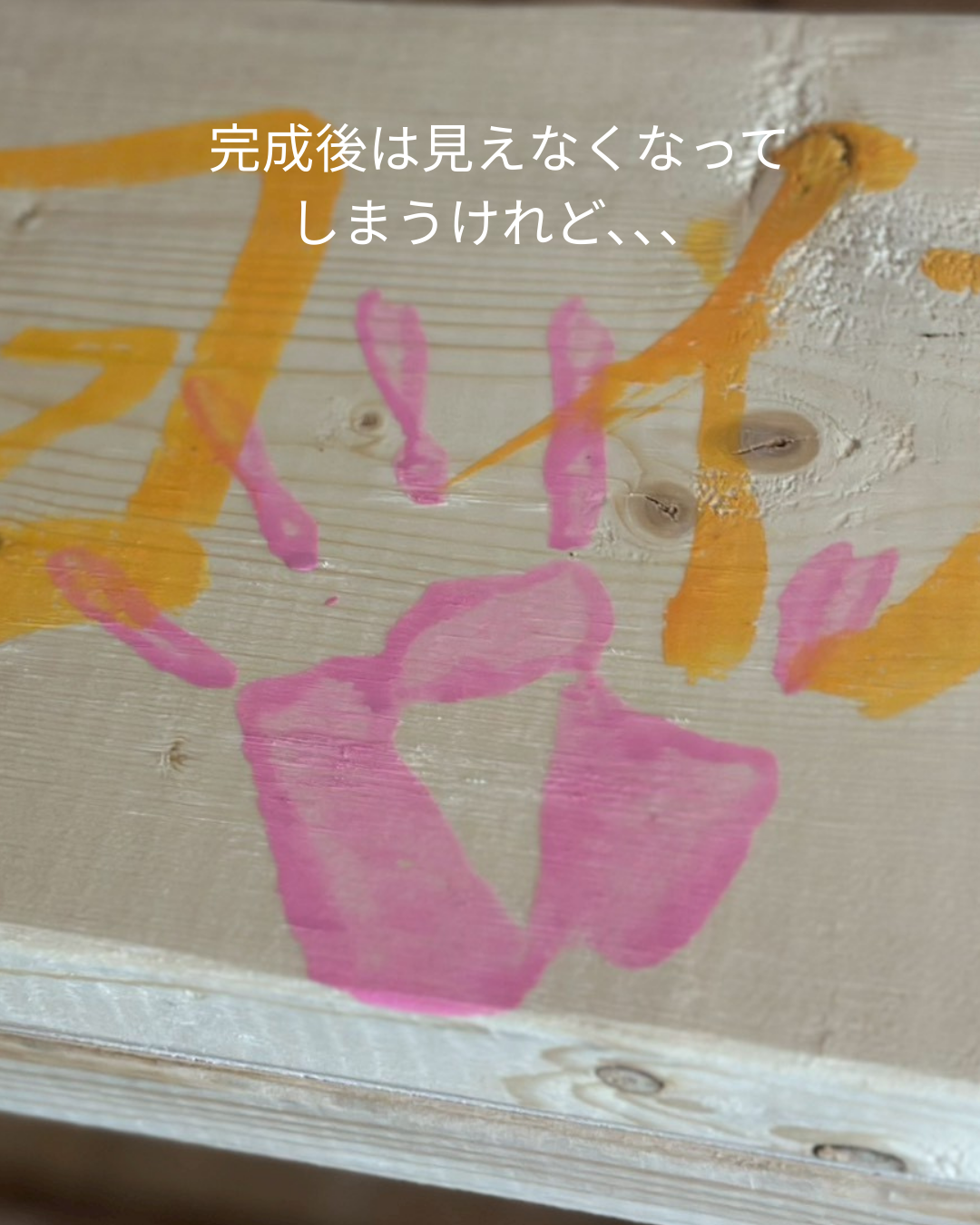 お家づくりの節目に、手形やメッセージを残す大切な時間😊 完成後は見えなくなってしまいますが、この住まいの中に、確かに想いが刻まれています。