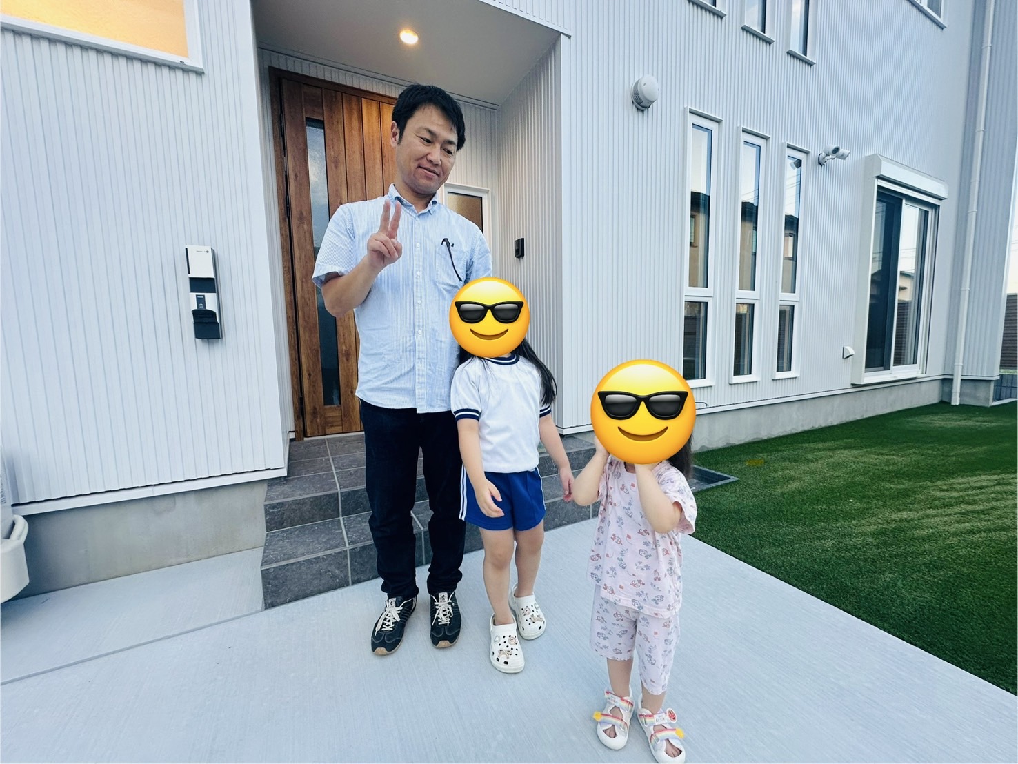 家族も、新しいお家の完成に笑顔いっぱい😊(仕事終わりに行ったので、下の娘がパジャマ姿なのはご愛嬌で🤣)
